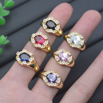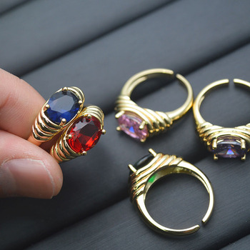 Vintage deslumbrante colorido ovalado circón anillos de dedo Corea moda 18K chapado en oro anillos abiertos para mujeres fiesta joyería al por mayor