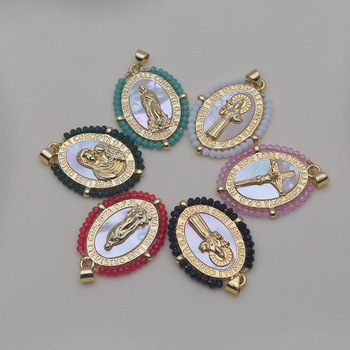 Concha de fregona Natural chapada en oro clásico, amuletos ovalados de la Virgen María, medallas religiosas, colgante cruzado para accesorios de fabricación de joyas